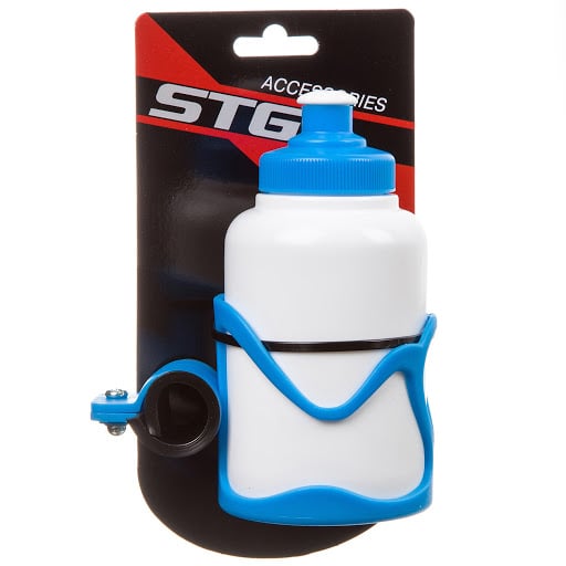 Детская пластиковая фляжка STG продается в комплекте с удобным флягодержателем. Держатель крепится на руль велосипеда с помощью удобного хомута. Бутылочка имеет специальный клапан, который открывается ртом. Материал изготовления: гипоаллергенный пищевой пластик.Характеристики