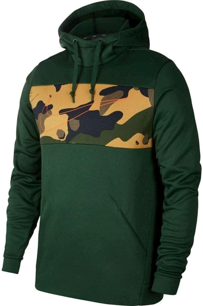Стильная мужская толстовка Nike создана для комфортных занятий спортом и повседневного ношения в городской среде. Фирменные технологии и высококачественные материалы будут радовать Вас в течение многих лет. Удобная и практичная, толстовка продумана до мелочей. Современный дизайн и контрастный камуфляжный принт на груди создадут неповторимый образ на каждый день. Худи сочетается не только со спортивными вариантами брюк, но и хорошо подходит к повседневным джинсам. Приталенный крой подчеркивает фигуру и не сковывает движения во время интенсивных занятий. Технология Dri-Fit обеспечивает быстрый отвод лишней влаги на поверхность ткани, где она быстро испаряется. Фирменная ткань Nike Therma сохраняет оптимальную температуру тела, как на улице, так и в помещении. Вы сможете чувствовать себя сухо и комфортно на протяжении целого дня. Удобные врезные карманы вмещают в себя все необходимые мелочи для улицы или тренировки. Вшитый мягкий капюшон регулируется по объему шнурками. Плоские швы не натирают во время активных упражнений и не доставляют дискомфорта во время ношения. Эластичные манжеты приятно облегают запястья, защищая от ветра в прохладную погоду.Особенности и преимущества: